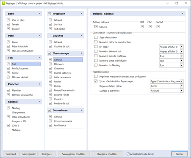 Sélectionner le réglage "TOIT-Cours de panne" pour visualiser où les chevrons sont positionnés sur les pannes. |
