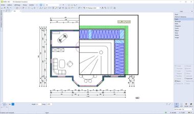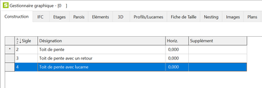 Il est possible de créer plusieurs constructions du même projet de construction dans le gestionnaire graphique. Exemple: Créer un bâtiment avec un toit à deux pans standard. Si le client souhaite y ajouter un retour ou une lucarne, il peut copier cette construction.