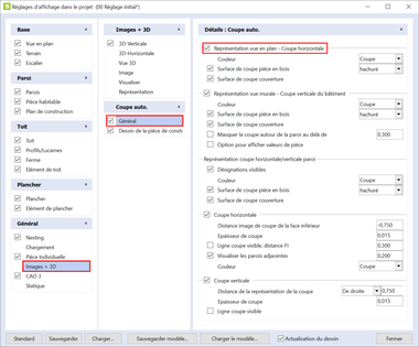 Dans le menu F7, sélectionner la rubrique "Images+3D" > "Général" puis cocher l'option "Représentation vue en plan - Coupe horizontale". |