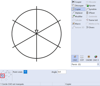 Cela se fait facilement à l'aide d'une ligne CAO et d'une copie multiple (Alt+1) de celle-ci. La ligne CAO est copiée autour du centre du cercle.