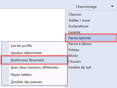 Dans le programme "Chevronnage", sélectionner la fonction de création "Pannes" ► "Positionner librement des pannes" |