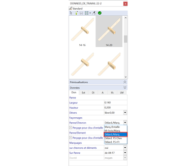 Dans les données souches d'une panne, sélectionner la rubrique "Panne-Chevron" et changer du façonnage standard "Entaille-Marquer" au façonnage "Délarder-Marquer".