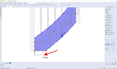 Marquer le limon correspondant et activer la vue de pièce. L'escalier est marqué dans l'élévation.